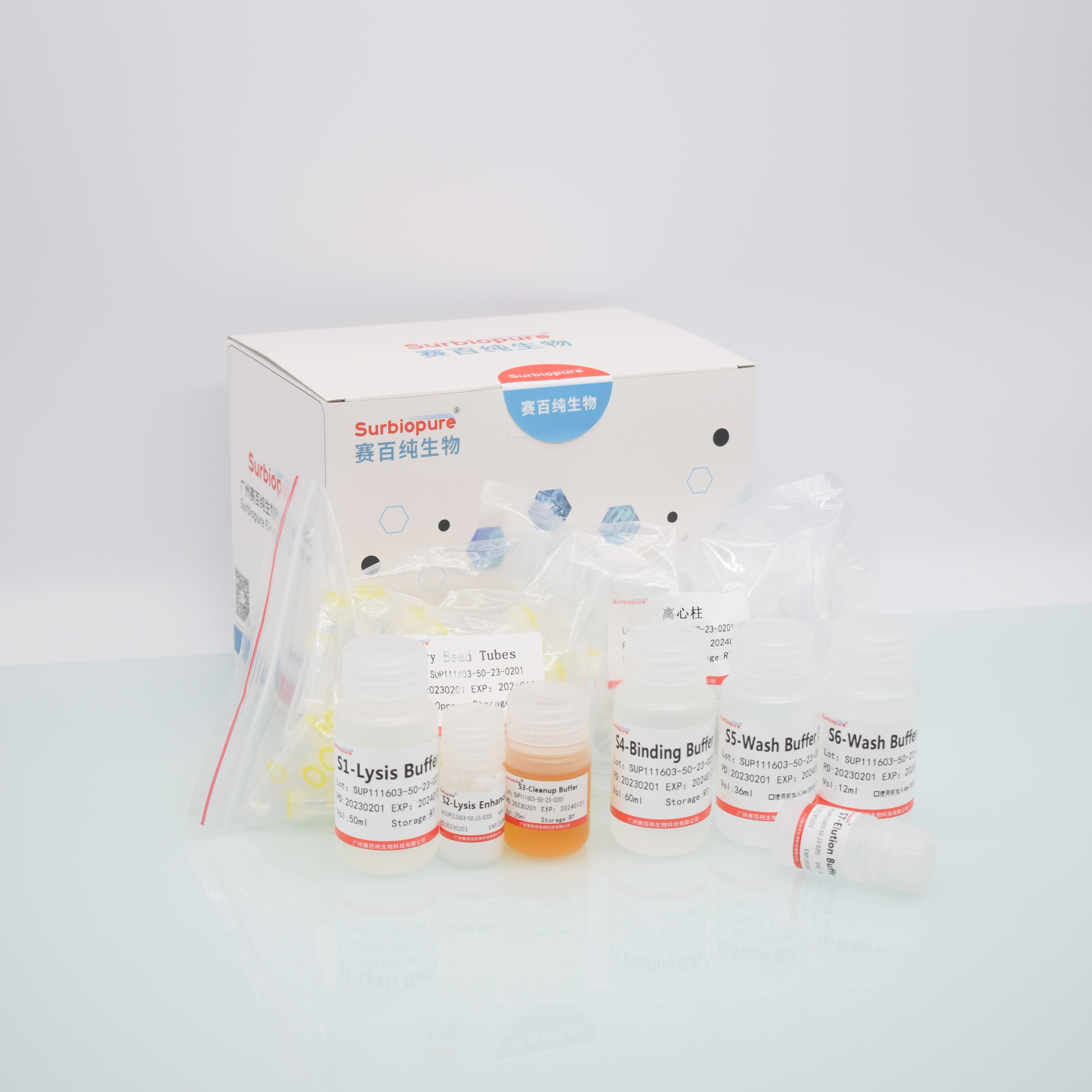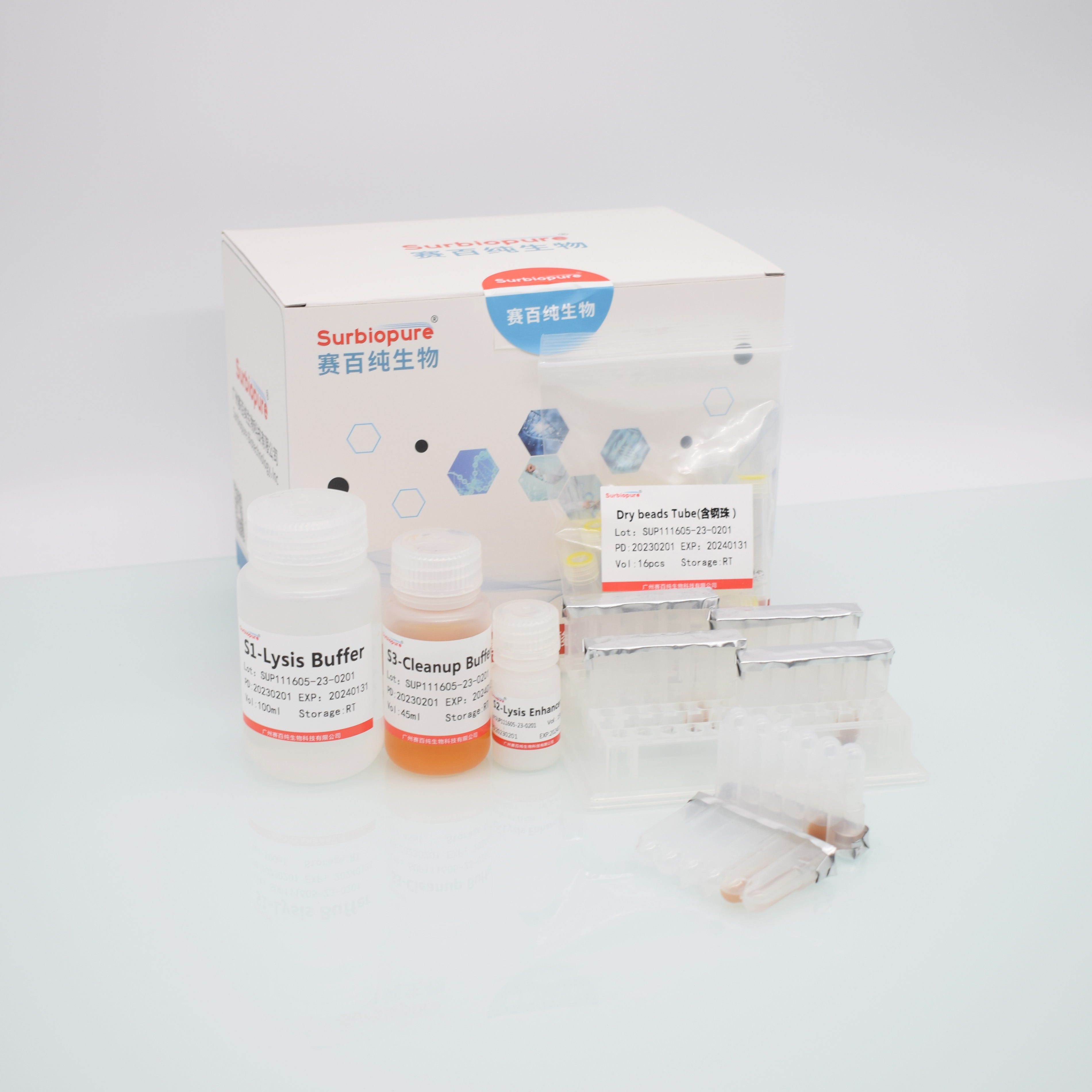【產(chǎn)品名稱】糞便核酸提取試劑盒 英文名稱:nucleic acid extraction kit for faeces 【包裝規(guī)格】40份/盒、60份/盒、64份/盒、96份/盒 【預(yù)期用途】 本試劑盒是專門從糞便、肛拭子等樣品中病毒、細(xì)菌DNA的提取和純化而設(shè)計的。試劑盒采用磁珠法純化技術(shù),并結(jié)合獨(dú)創(chuàng)的腐殖酸吸附劑技術(shù),適合于從各種環(huán)境拭子、土壤、糞便、尿液病毒和細(xì)菌微生物宏基因組的篩查及NGS檢測。目前廣泛應(yīng)用的例子:土壤,糞便,尿液,肛拭子;試劑盒能夠從此類樣品中提取高產(chǎn)量高純度的總DNA 。 【實驗原理】 試劑盒是采用高結(jié)合力的納米磁珠為基質(zhì)。磁珠在高濃度離子化劑(如鹽酸胍或異硫氰酸胍)條件下,可通過氫鍵和靜電等物理因素吸附核酸而形成磁珠核酸復(fù)合物,而蛋白質(zhì)或其它雜質(zhì)不被吸附而去除。吸附了核酸的磁珠經(jīng)洗滌去除蛋白質(zhì)和鹽,最后可以用低鹽緩沖液(如Buffer TE)或水,洗脫出納米磁珠上吸附的核酸。得到的核酸純度高,可直接用于各種下游實驗。此外,S3-抑制物清除劑溶液是我們獨(dú)創(chuàng)的腐殖酸吸附劑,該吸附劑可選擇性吸附DNA樣品中的腐殖酸等抑制因子,提高DNA純度。111601