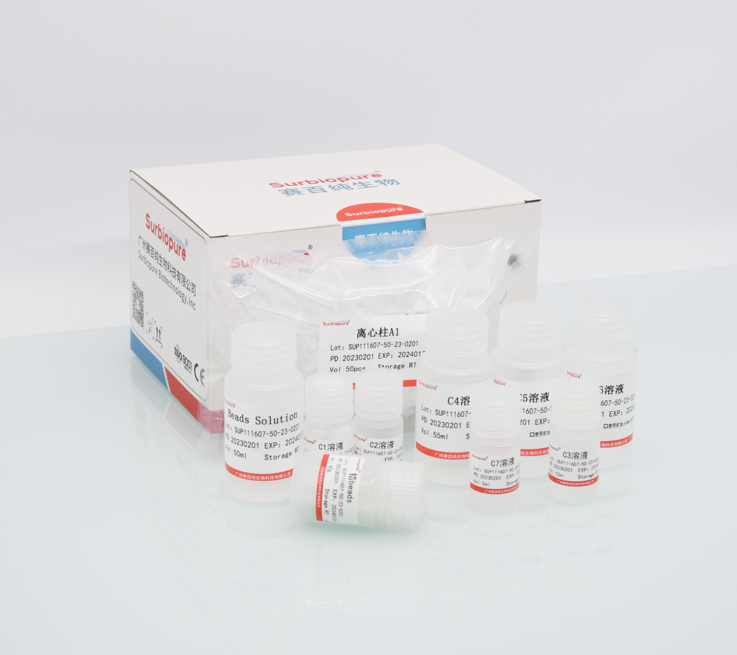 【產(chǎn)品名稱】通用型 RNA提取試劑盒 【包裝規(guī)格】Sup-151603:50次、 Sup-151604:100次 【產(chǎn)品簡介】本試劑盒是基于TRizol改進(jìn)后的柱式總RNA提取試劑盒,裂解液充分裂解并勻質(zhì)化樣本,采用獨(dú)特的硅基質(zhì)膜吸附技術(shù),通過離心吸附柱在高鹽狀態(tài)下高效專一的結(jié)合溶液中的RNA,同時最大限度的有效除去蛋白質(zhì)、無機(jī)鹽離子及有機(jī)雜質(zhì)等;可從動物組織、植物材料、各種微生物及培養(yǎng)細(xì)胞等樣品中快速提取總RNA,每次可處理 30-50 mg組織或5×106細(xì)胞,可同時處理多個不同樣品。本試劑盒提取得到的RNA可直接應(yīng)用于RT-PCR、Northern Blot、Dot Blot、體外翻譯等實驗。 【產(chǎn)品特點(diǎn)】 ·純度高:最大限度除去蛋白質(zhì)等雜質(zhì),提取的RNA可直接用于下游各種實驗。 ·提取量大:獨(dú)特的裂解液配方,充分裂解細(xì)胞或組織,RNA提取量多至100 μg。 ·快速:步驟少,操作簡單,節(jié)省時間。 ·兼容性強(qiáng):適用于多種動植物組織和細(xì)胞RNA的提取。151603 151604